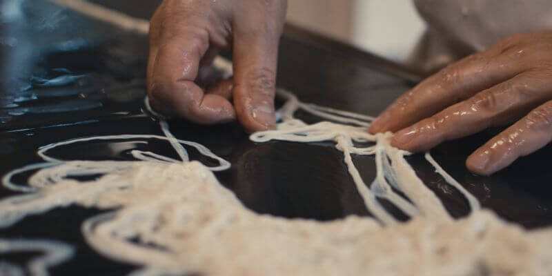 Die Därme werden nach einer ersten Einweichprozedur entwirrt.